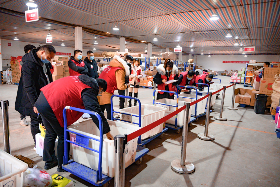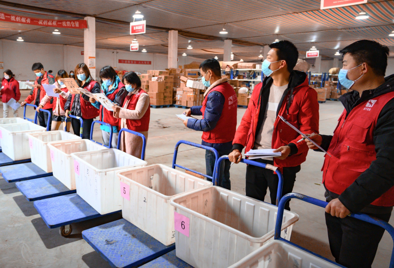 当天下单、当日送达,量子美食响应快、配送快的物流体系被行业认可,司机配货就是其中的重要一环。按照清单分区域、分品类快速配齐产品是司机们的必备技能,一辆辆飞驰的小车、一堆堆小山一样的货品,经由司机师傅的手分类码齐交接下一工序验货,现场的推车声、跑步声和大家的掌声充满了仓库。