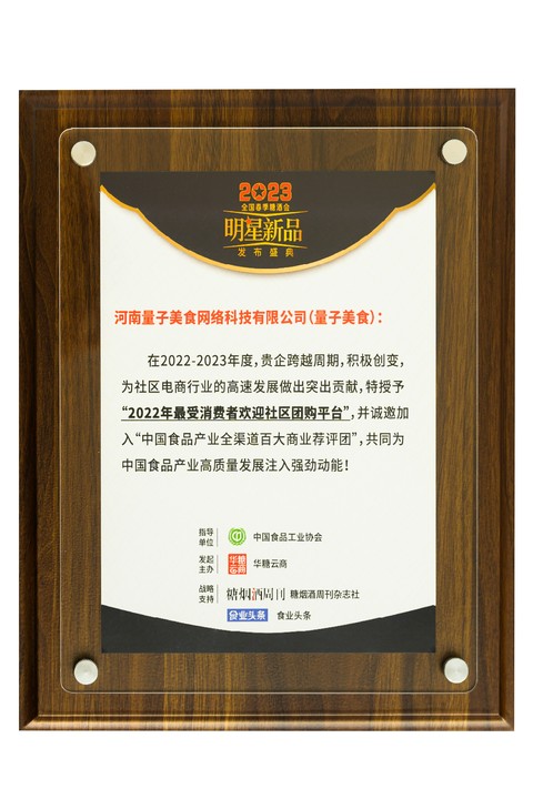 2022-042022年4月,量子美食率先推出团长专职化措施,秉着帮人等于帮己的市场发展理念,量子美食深耕细作,很快培育出专职团长400名以上。同年10月,量子美食搬入自己独有的仓储和办公园区。